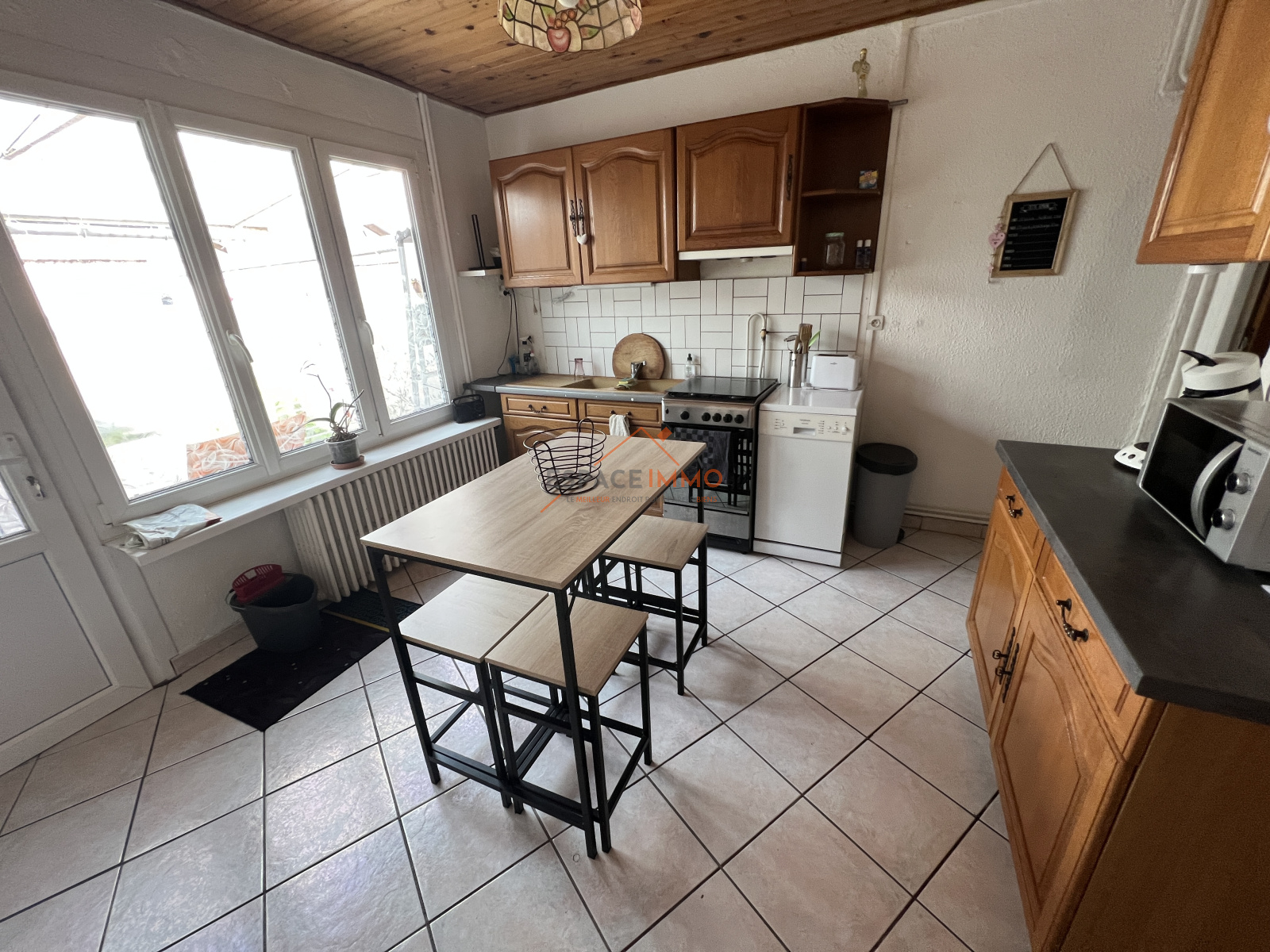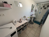 DOUCHY LES MINES : Nous vous proposons à la location cette maison comprenant couloir d'entrée, salon, salle à manger, cuisine meublée, cellier, salle de bains avec douche, vasque et toilettes.