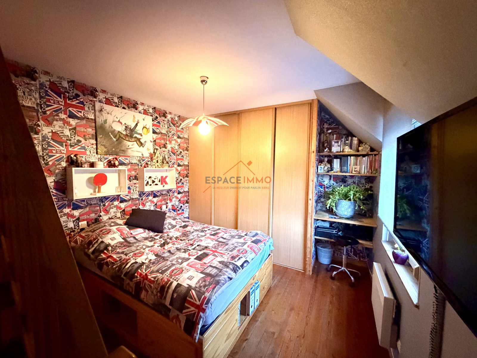 Au second étage, les combles ont été aménagés en bureau, parfaits pour le télétravail, un espace détente ou un espace nuit supplémentaire.