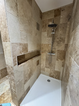À l’étage, deux belles chambres ainsi qu’une salle de bains avec WC vous attendent.