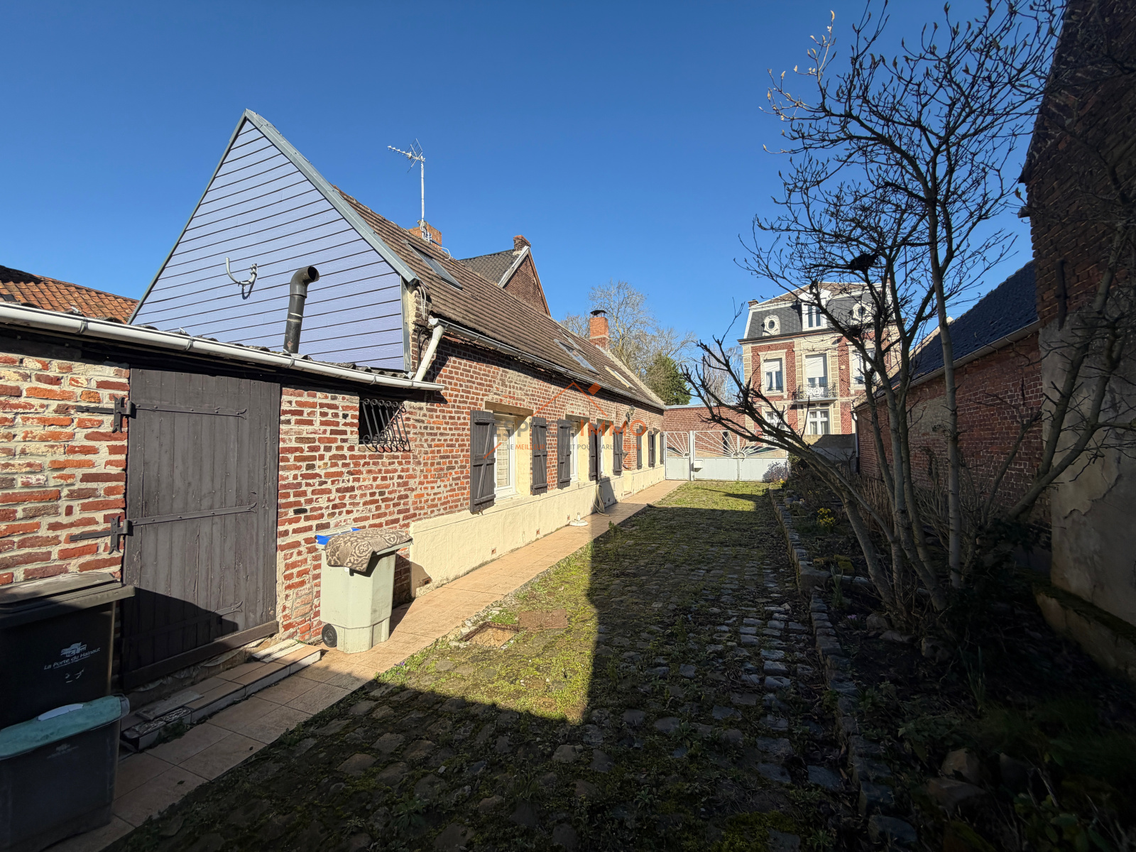 À l’extérieur, vous profiterez d’une cour intérieure pavée permettant le stationnement de plusieurs véhicules, d’une grange à usage de garage d’environ 60 m² offrant de nombreuses possibilités (atelier, stockage ou futur aménagement), d’une cave ainsi que d’un jardin arboré agréable et verdoyant.