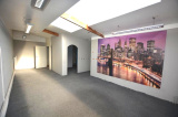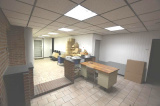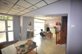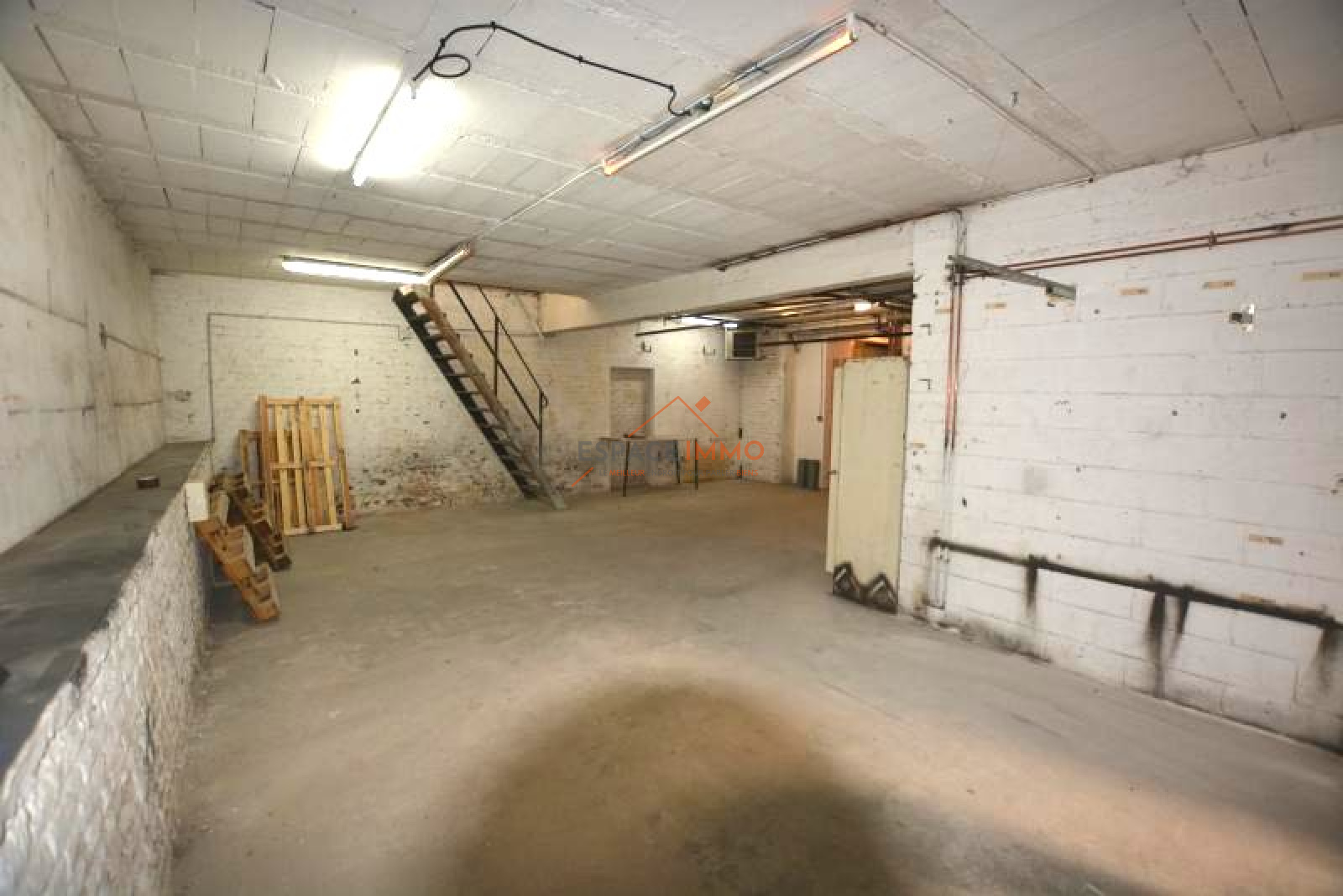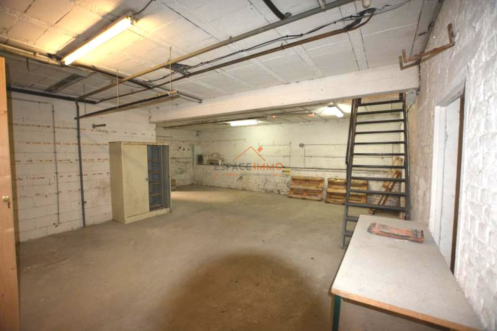 Au rez-de-chaussée, une première entrée permet l'accès à une zone d'accueil, un bureau et une cave. Un couloir donne un accès à des sanitaires et à une autre zone d'accueil (avec bureaux et local technique). Une autre porte donne accès à un garage (permettant le stationnement de plusieurs véhicules) et à une zone de stockage. Cette partie donne également accès au R+1 (zone de plusieurs bureaux, sanitaires et coin kitchinette) avec une partie mezzanine.