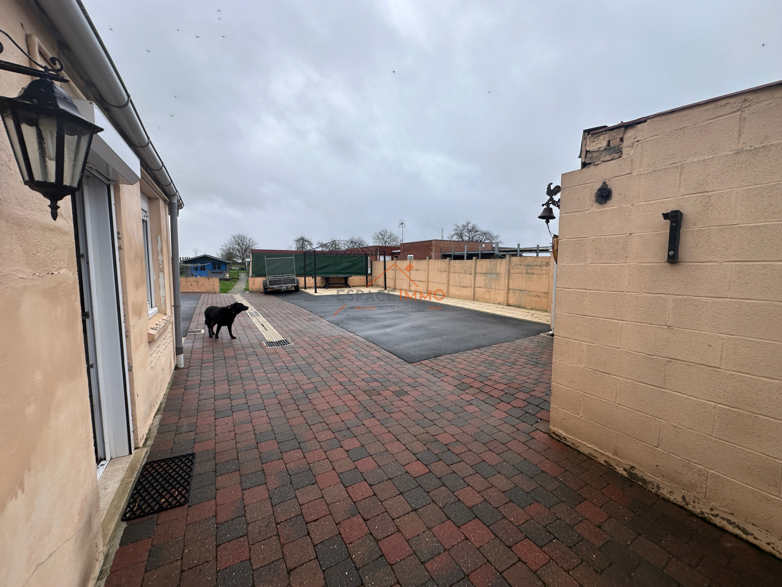 Cour en macadam permettant de stationner plusieurs véhicules